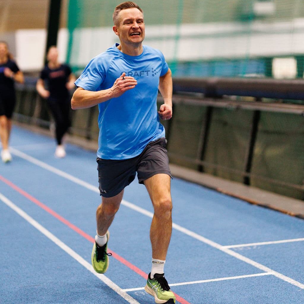 ”Alkuvauhdiksi asetettiin 7.15 min/km, sillä osallistujien kuntotaso vaihteli merkittävästi. Testissä vauhtia lisätään 0,1 m/s jokaisella kierroksella, ja jokainen juoksee niin pitkään kuin jaksaa”, Pulkkinen kertoi.