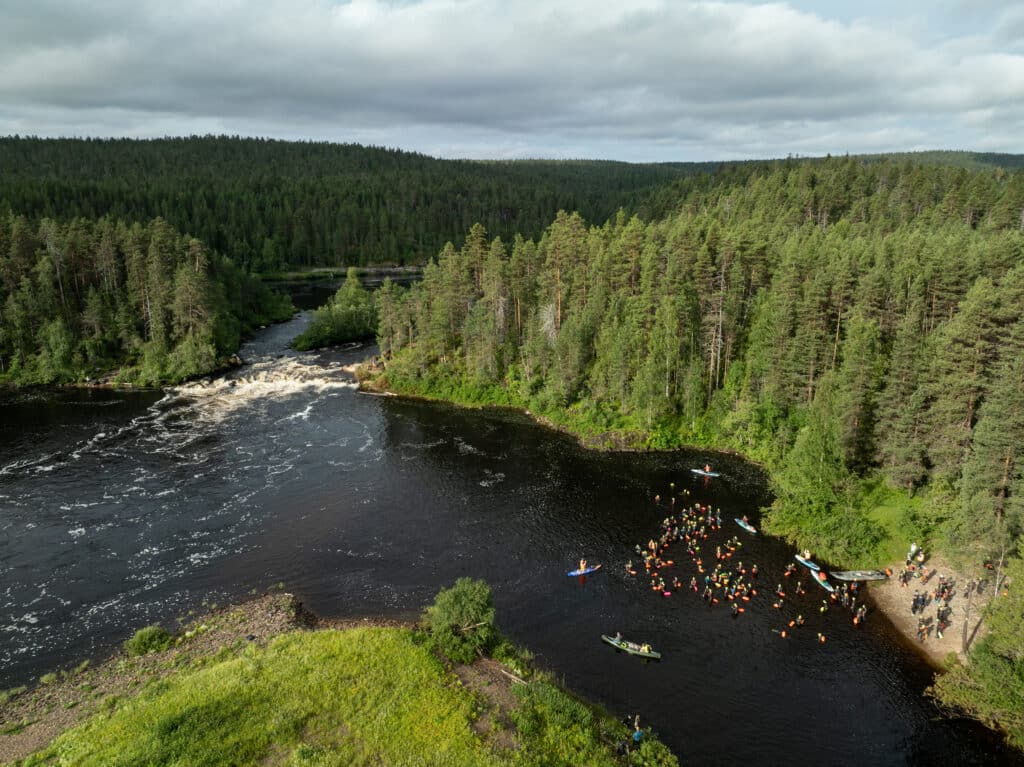– Kansallispuisto ja Metsähallitus asettavat tapahtumalle tietyt ehdot, mutta yhteistyö on ollut erittäin jouhevaa ja toimivaa. Oulankajoen luonto tarjoaa vedestä käsin erilaisen perspektiivin kuin vaikka vaeltaessa Karhunkierroksella. Lähemmäs luontoa ei voi päästä kuin uidessa myötävirtaan. Tapahtuma tehdään luonnon ehdoilla ja kunnioittaen luontoa, toteaa tuottaja Kalle Kotiranta.