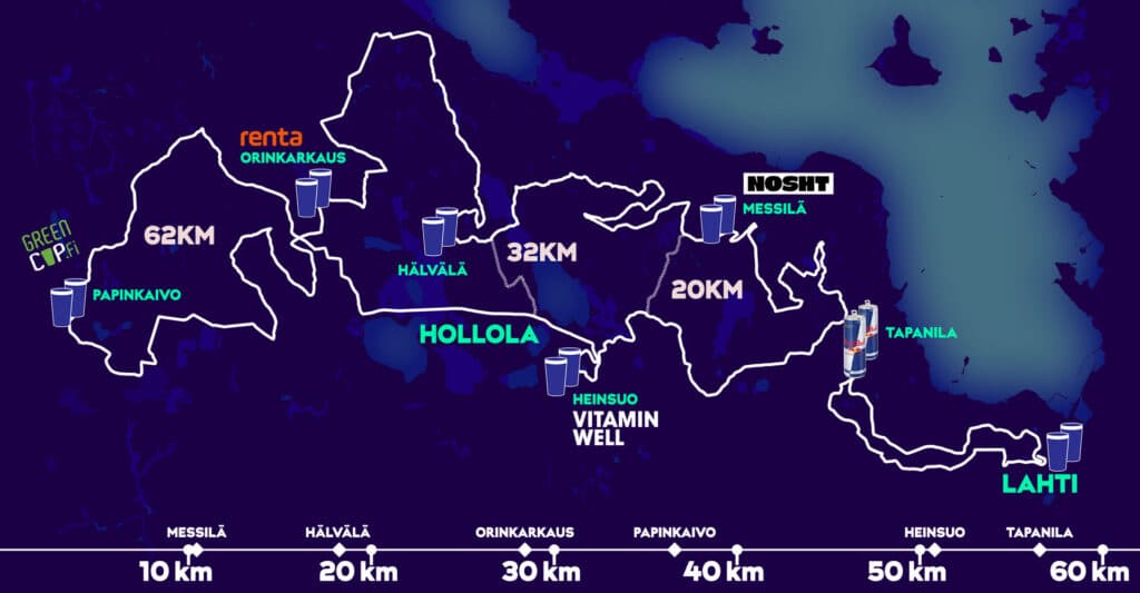 Finlandia-hiihdossa on tarjolla vaihtoehtoja niin kokeneille konkareille kuin vasta-alkajillekin. Lauantaina hiihdettävissä matkoissa on tarjolla 62, 32 ja 20 kilometrin reitit perinteisellä hiihtotavalla, kun taas sunnuntaina samoja matkoja hiihdetään vapaalla tyylillä. Pisin reitti kulkee Lahden hiihtostadionilta Hollolan Papinkaivon kautta takaisin Lahteen. Uutena elämyksenä maaliin tullaan legendaarisen Intiaanikukkulan kautta. J-mutka tosin hiihdetään huomattavasti helpotettuna.