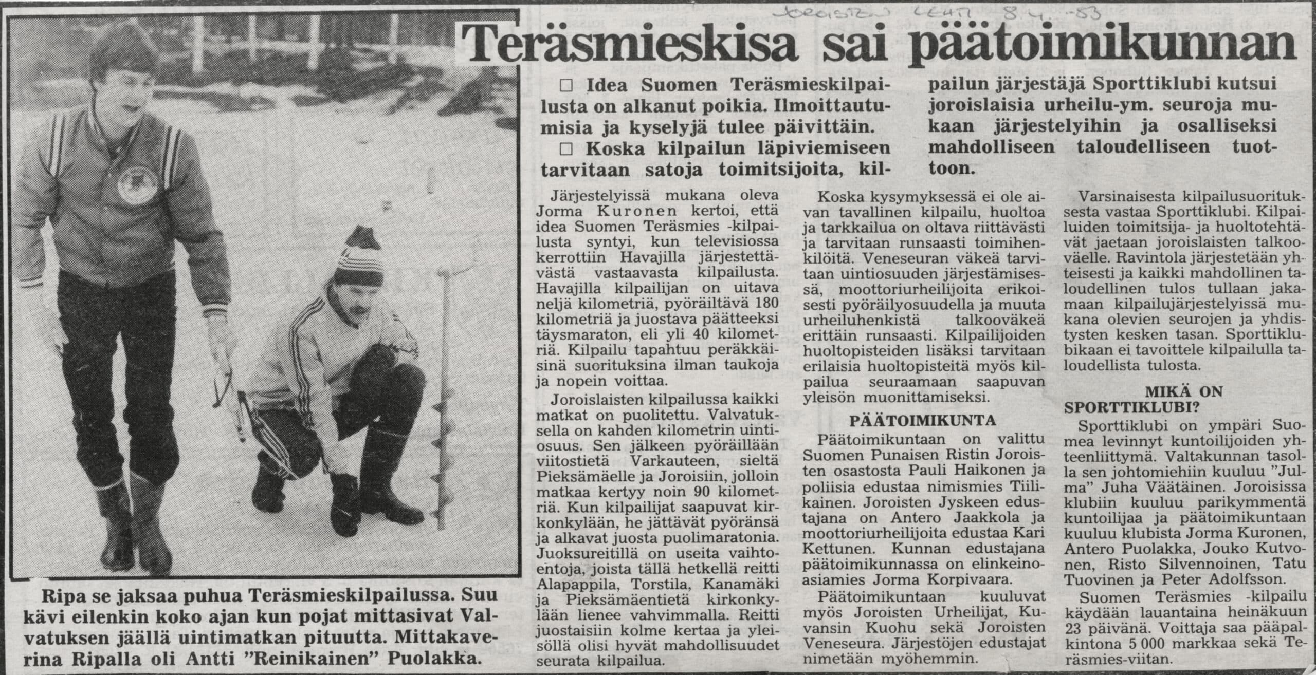 Jorma oli Joroisten kunnan sivistystoimenjohtaja 80-luvulla. Hän päivysti kilpailujen infopuhelinta omien työtehtävien ohella. Yksi kunnan puhelinnumeroista oli annettu kilpailujen käyttöön. Jorman tehtäviin kuului alkuvuosina ajanoton