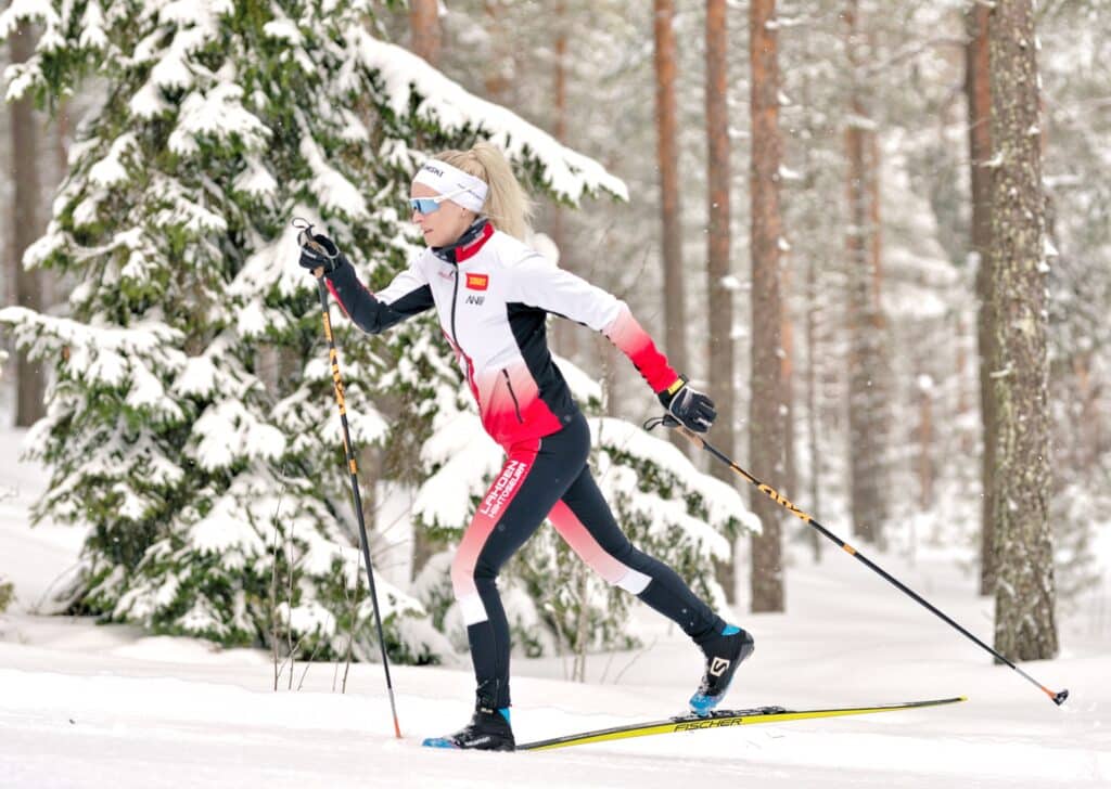 Ylämäkeen mentäessä hiihtoasento nousee pystymmäksi, liu’un pituuden merkitys vähenee ja askelpituuden merkitys korostuu. Voit hakea lisää askelpituutta ojentamalla nilkan eteen askeleen aikana. Ylämäessä hiihtäjän kulma tulee luonnostaan mäen mukaan. Asento muuttuu pystymmäksi, jotta suksesta ei tule takaliukas. Hiihtäjän kulma suhteessa latuun säilyy aina hyökkäävänä. Vauhdin hidastuessa liikelaajuus suppenee ja työntö jää lyhyemmäksi. Kuntohiihtäjän ei kannata väkisin yrittää liu’uttaa suksea ylämäkeen vaan keskittyä ennen kaikkea oikeaan rytmiin, askelpituuteen ja siihen, että sauva tulee alakautta eteen ja säilyy menosuuntaan.