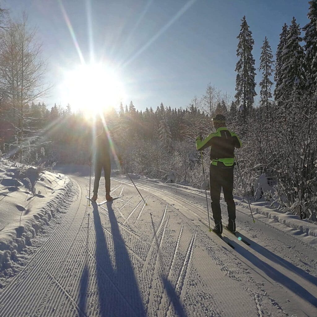 Peruslenkin yhteydessä suksilla tai vaikka juosten ota noin 10 kpl 10 sekunnin vetoja melkein täysillä. Aluksi riittää, että teet vetoja noin 80–90 % teholla ja pikku hiljaa lisäät tehoa suoritusvarmuuden löytyessä. Tee aluksi vedot loivaan ylämäkeen, jotta liikelaajuudet eivät kasva liikaa ja harjoitus säilyy turvallisena.